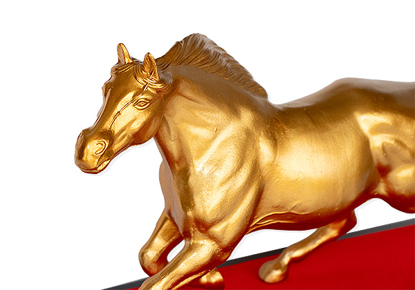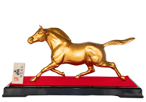 2026年の干支「馬」を、繁栄や富を象徴する金色で表現した工芸品です。 金色の馬は、運気上昇や成功を願う縁起の良いモチーフ。 新しい年の幕開けを華やかに彩ります。